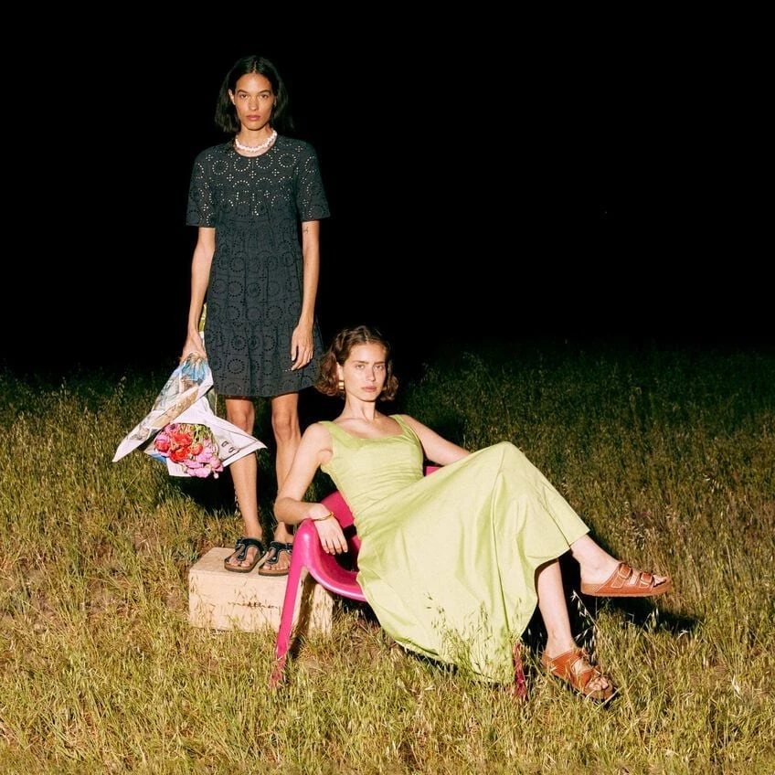 Introducing the BIRKENSTOCK + STAUD Summer Capsule: a limited-edition collection of timeless, free-spirited and versatile pieces created in partnership with luxury boutique brand STAUD. Designed for effortless day-to-night dressing, the collection includes this elevated Arizona, made with croc embossed leather, oversized buckles and STAUD’s signature contrast-stitching. Pair with STAUD dresses and separates for any and all occasions the ultimate outfit completer. STAUD ready-to-wear and accessories available at staud.clothing.