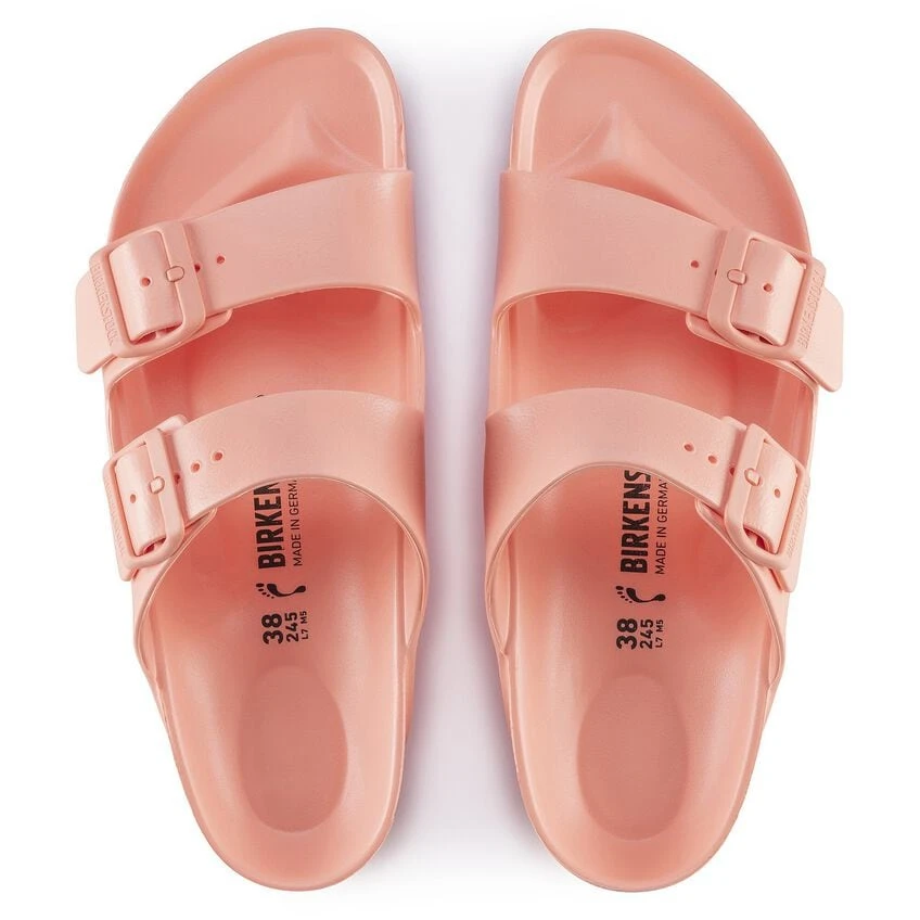 The legendary two-strap design from BIRKENSTOCK – the Arizona. Modeled on the cork original, this sandal is made from ultra lightweight and highly flexible EVA. These sandals are shock absorbing, waterproof, and skin-friendly. Wear them at the beach, in the garden, or around the gym and after workouts. It’s the perfect addition to your classic BIRKENSTOCK sandals.