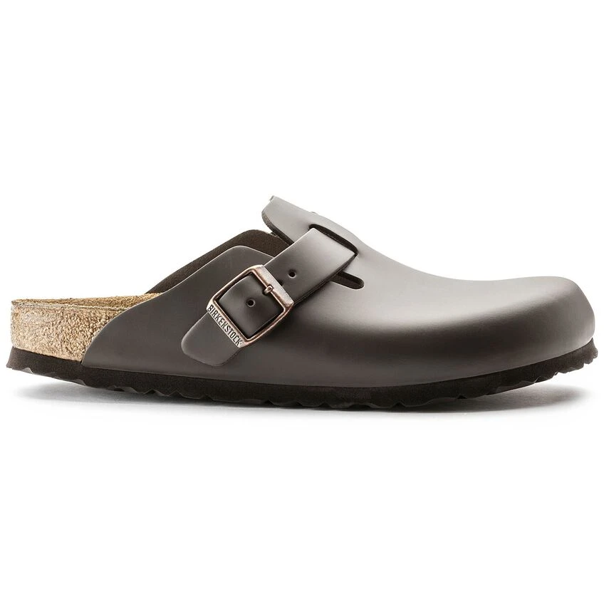 Our most sought-after clog, the Boston lends a fashion-forward edge to any style. Handcrafted for quality, featuring smooth natural leather for an elevated look. Complete with legendary BIRKENSTOCK design elements, like a contoured cork-latex footbed for the ultimate in support.