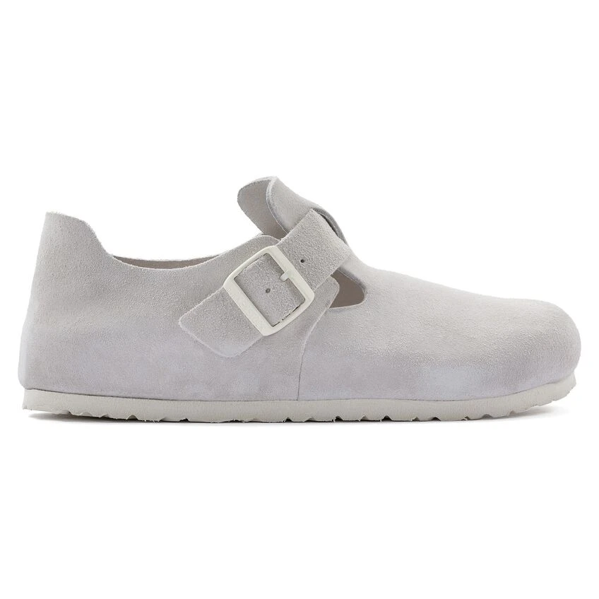 The London — a classic BIRKENSTOCK heritage closed toe silhouette with clean lines and an adjustable buckle strap. Featuring our original cork latex footbed for all day comfort and an EVA sole for added cushion. The upper is made of durable soft suede.