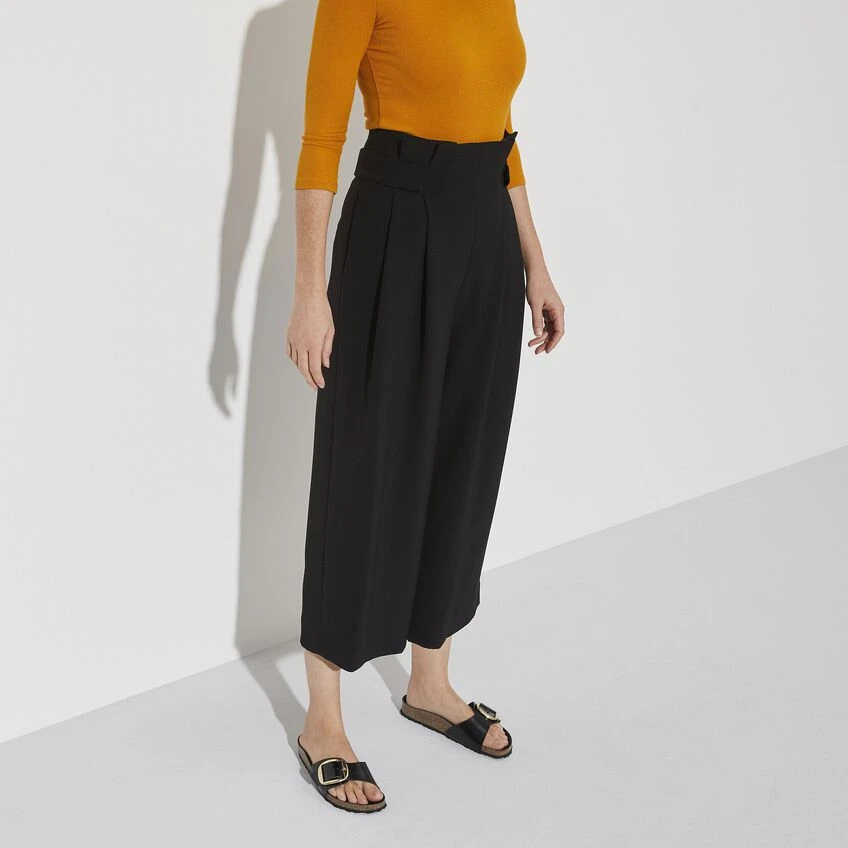 The original BIRKENSTOCK Sandal. A strap, a buckle, and a contoured cork footbed are masterfully combined to create the Madrid. An iconic slide with an amplified buckle accent. The semi-exquisite footbed is fully lined with soft piumato leather, making it exceptionally comfortable. The upper is made from high-quality natural leather with a high shine finish.