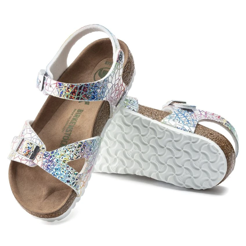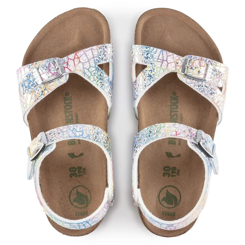 The Rio – a cute and sporty classic from BIRKENSTOCK featuring a backstrap for added security, comfort, and support. This vegan version comes in a fun, glittering disco design. The upper is made from skin-friendly microfiber.